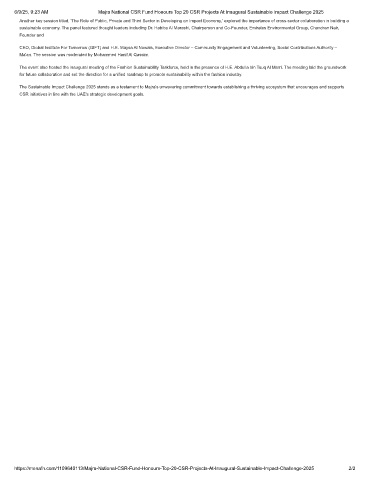 https://menafn.com/1109640113/Majra-National-CSR-Fund-Honours-Top-20-CSR-Projects-At-Inaugural-Sustainable-Impact-Challenge-2025 2/2