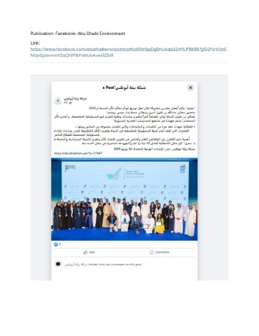 Publication: Facebook- Abu Dhabi Environment Link: https://www.facebook.com/abudhabienv/posts/pfbid0Nr5pjDgDhUeqb42xMLPRk9B7gSQFvrVUzC NGpQybxmmYZqQVJP8iFwbUoAzwGZSVl
