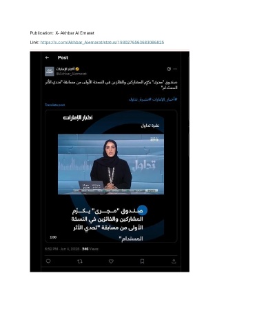 Publication: X- Akhbar Al Emarat Link: https://x.com/Akhbar_Alemarat/status/1930276563683086825