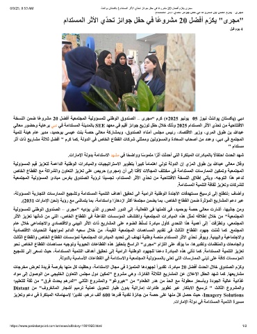 تﺎﺟﺮﺨﻣ ضﺮﻌﻟ ةﺪﯾﺮﻓ ﺔﺻﺮﻔﺑ ﺎﮭﻨﻣ ﻞﻛ ﺖﯿﻈﺣو ،ﺔﻣاﺪﺘﺳﻻا لﺎﺠﻣ ﻲﻓ ةﺰﯿﻤﺘﻤﻟا ﺎھدﻮﮭﺠﻟ ًاﺮﯾﺪﻘﺗ ،ةردﺎﺒﻣ 20 ﻞﻀﻓأ ثﺪﺤﻟا لﻼﺧ قوﺪﻨﺼﻟا م ّ ﺮﻛو