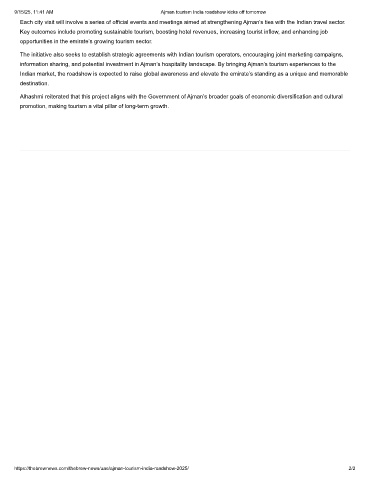 9/15/25, 11:41 AM Ajman tourism India roadshow kicks off tomorrow