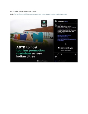 Publication: Instagram – Emirati Times Link: Emirati Times: ADTD to host tourism promotion roadshow across Indian cities