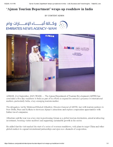 https://totaluae.com/posts/emirates/ajman-tourism-department-wraps-up-roadshow-in-india/ 1/1