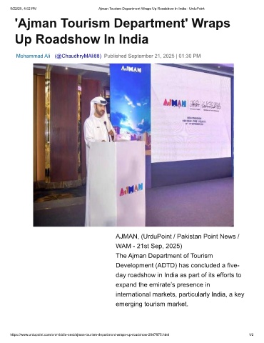 9/22/25, 4:52 PM Ajman Tourism Department Wraps Up Roadshow In India - UrduPoint