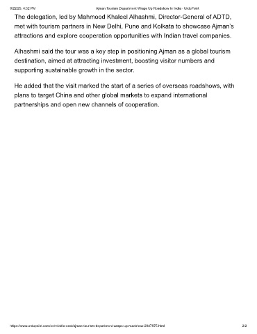 9/22/25, 4:52 PM Ajman Tourism Department Wraps Up Roadshow In India - UrduPoint
