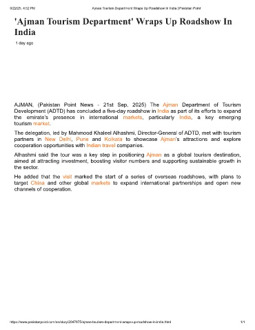 9/22/25, 4:52 PM Ajman Tourism Department Wraps Up Roadshow In India | Pakistan Point