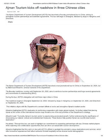 9/23/25, 9:39 AM ttnworldwide.com/Article/388478/Ajman-Tourism-kicks-off-roadshow-in-three-Chinese-cities
