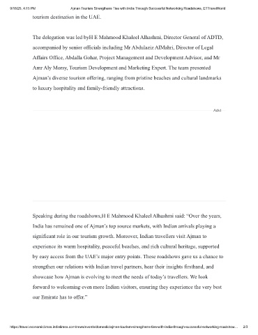 https://travel.economictimes.indiatimes.com/news/events/domestic/ajman-tourism-strengthens-ties-with-india-through-successful-networking-roadshow… 2/3