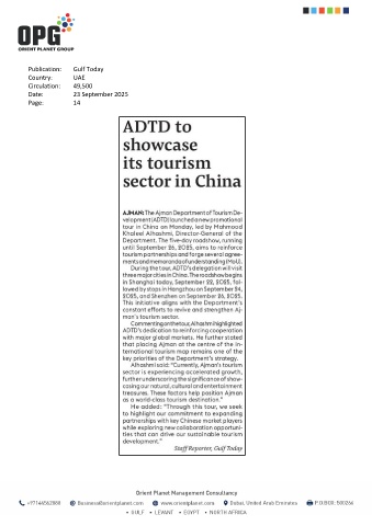 Publication: Gulf Today Country: UAE Circulation: 49,500 Date: 23 September 2025 Page: 14