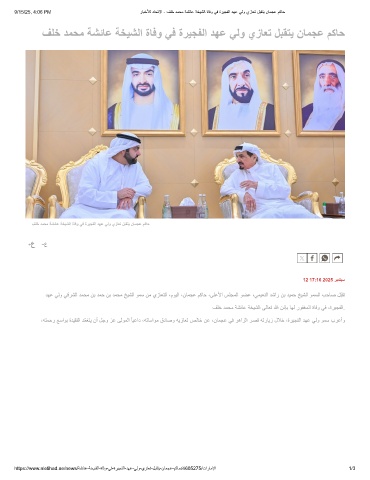 https://www.aletihad.ae/news/ﺔﺷﺋﺎﻋ-ﺔﺧﯾﺷﻟا-ةﺎﻓو-ﻲﻓ-ةرﯾﺟﻔﻟا-دﮭﻋ-ﻲﻟو-يزﺎﻌﺗ-لﺑﻘﺗﯾ-نﺎﻣﺟﻋ-مﻛﺎﺣ/4605275/تارﺎﻣﻹا 1/3