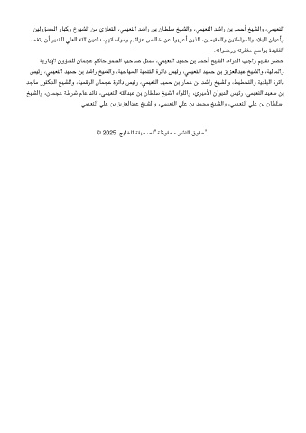 ﺦﻴﺸﻟاو ،نﺎﻤﺠﻋ ﺔﻃﺮﺷ مﺎﻋ ﺪﺋﺎﻗ ،ﻤﻴﻌﻨﻟا ﻪﻟاﺪﺒﻋ ﻦﺑ نﺎﻄﻠﺳ ﺦﻴﺸﻟا ءاﻮﻠﻟاو ،يﺮﻴﻣﻷا ناﻮﻳﺪﻟا ﺲﻴﺋر ،ﻤﻴﻌﻨﻟا ﺪﻴﻌﺳ ﻦﺑ