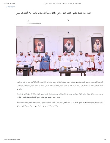 9/23/25, 9:06 AM ﻲﺳﯾرﻟا دﻣﺣأ نﺑ رﺻﺎﻧ موﺣرﻣﻟا ﺔﻠﻣرأ ةﺎﻓو ﻲﻓ ءازﻌﻟا بﺟاو مدﻘﯾ دﯾﻣﺣ نﺑ رﺎﻣﻋ