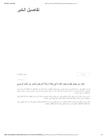 https://www.ajmanmedia.ae/ar/media-center/news/21/9/2025/ﻲﺳﯾرﻟا-دﻣﺣأ-نﺑ-رﺻﺎﻧ-موﺣرﻣﻟا-ﺔﻠﻣرأ-ةﺎﻓو-ﻲﻓ-ءازﻌﻟا-بﺟاو-مدﻘﯾ-دﯾﻣﺣ-نﺑ-رﺎﻣﻋ 1/1