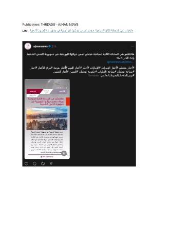 Publication: THREADS – AJMAN NEWS Link: ةيبعشلا نيصلا ةيروهمج يف ةيجيورتلا اهتلوج نمض نامجع ةيحايسل ةيناثلا ةطحملا يه وشتغناه