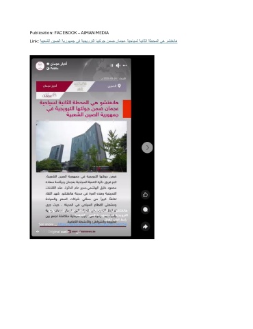 Publication: FACEBOOK – AJMAN MEDIA Link: ةيبعشلا نيصلا ةيروهمج يف ةيجيورتلا اهتلوج نمض نامجع ةيحايسل ةيناثلا ةطحملا يه وشتغناه