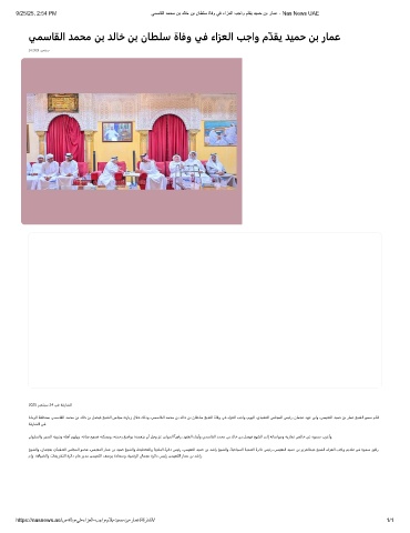 9/25/25, 2:54 PM ﻲﻣﺳﺎﻘﻟا دﻣﺣﻣ نﺑ دﻟﺎﺧ نﺑ نﺎطﻠﺳ ةﺎﻓو ﻲﻓ ءازﻌﻟا بﺟاو مّدﻘﯾ دﯾﻣﺣ نﺑ رﺎﻣﻋ - Nas News UAE