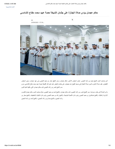 مرﺣ ،ﻲﺳﻣﺎﺷﻟا حﺎﺗﻔﻣ دﻣﺣﻣ دﯾﺑﻋ ﺔﺻﺣ ﺔﺧﯾﺷﻟا ،ﷲ نذﺈﺑ ،ﺎﮭﻟ روﻔﻐﻣﻟا نﺎﻣﺛﺟ ﻰﻠﻋ ،نﺎﻣﺟﻌﺑ دﯾاز ﺦﯾﺷﻟا دﺟﺳﻣ ﻲﻓ ةزﺎﻧﺟﻟا ةﻼﺻ ،موﯾﻟا برﻐﻣﻟا ةﻼﺻ بﻘﻋ ،يذﯾﻔﻧﺗﻟا