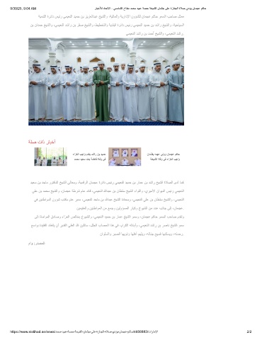https://www.aletihad.ae/news/دﻣﺣﻣ-دﯾﺑﻋ-ﺔﺻﺣ-ﺔﺧﯾﺷﻟا-نﺎﻣﺛﺟ-ﻰﻠﻋ-ةزﺎﻧﺟﻟا-ةﻼﺻ-يدؤﯾ-نﺎﻣﺟﻋ-مﻛﺎﺣ/4608883/تارﺎﻣﻹا 2/2