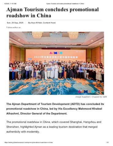 9/29/25, 11:07 AM Ajman Tourism concludes promotional roadshow in China