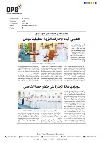 Publication: Al Khaleej Country: UAE Circulation: 121,141 Date: 27 September 2025 Page: 4