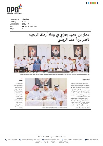 Publication: Al Etihad Country: UAE Circulation: 109,640 Date: 22 September 2025 Page: 3