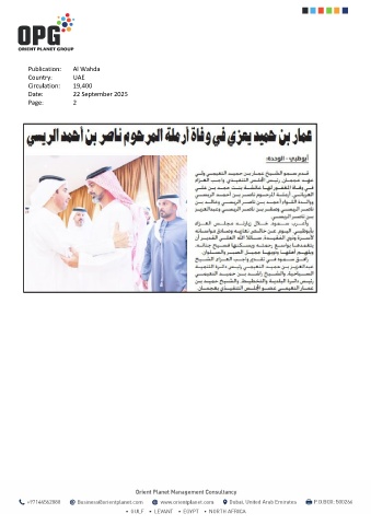 Publication: Al Wahda Country: UAE Circulation: 19,400 Date: 22 September 2025 Page: 2
