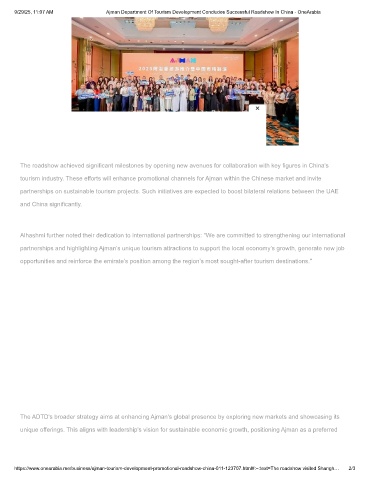 9/29/25, 11:07 AM Ajman Department Of Tourism Development Concludes Successful Roadshow In China - OneArabia