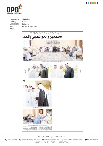 Publication: Al Khaleej Country: UAE Circulation: 121,141 Date: 15 September 2025 Page: 2