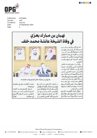 Publication: Al Khaleej Country: UAE Circulation: 121,141 Date: 14 September 2025 Page: 4