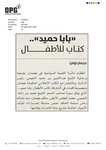 Publication: Al Etihad Country: UAE Circulation: 109,640 Date: 07 September 2025 Page: 16
