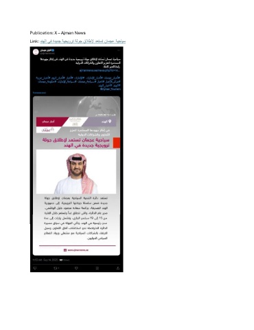 Publication: X – Ajman News Link: دنهلا يف ةديدج ةيجيورت ةلوج قلاطلإ دعتست نامجع ةيحايس