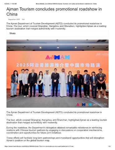 9/29/25, 11:08 AM ttnworldwide.com/Article/388666/Ajman-Tourism-concludes-promotional-roadshow-in-China