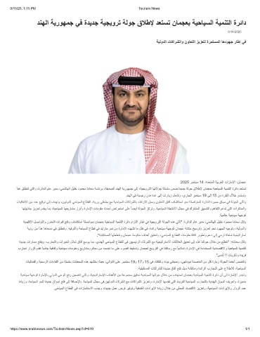 دﻧﮭﻟا ﺔﯾروﮭﻣﺟ ﻲﻓ ةدﯾدﺟ ﺔﯾﺟﯾورﺗ ﺔﻟوﺟ قﻼطﻹ دﻌﺗﺳﺗ نﺎﻣﺟﻌﺑ ﺔﯾﺣﺎﯾﺳﻟا ﺔﯾﻣﻧﺗﻟا ةرﺋاد