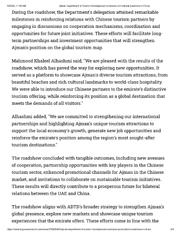 9/29/25, 11:09 AM Ajman Department of Tourism Development concludes promotional roadshow in China