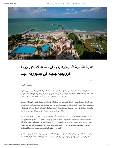 9/15/25, 1:09 PM دﻧﮭﻟا ﺔﯾروﮭﻣﺟ ﻲﻓ ةدﯾدﺟ ﺔﯾﺟﯾورﺗ ﺔﻟوﺟ قﻼطﻹ دﻌﺗﺳﺗ نﺎﻣﺟﻌﺑ ﺔﯾﺣﺎﯾﺳﻟا ﺔﯾﻣﻧﺗﻟا ةرﺋاد