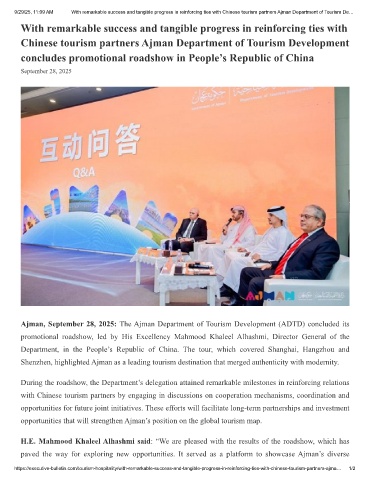 9/29/25, 11:09 AM With remarkable success and tangible progress in reinforcing ties with Chinese tourism partners Ajman Department of Tourism De…