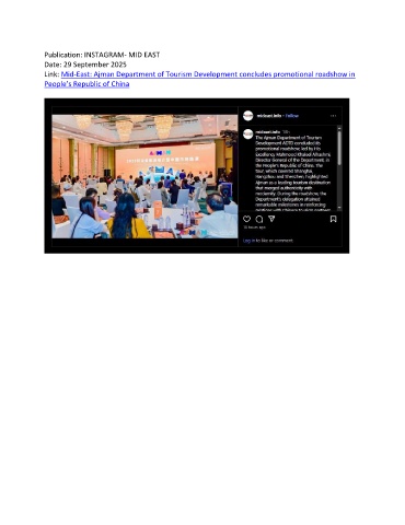 Publication: INSTAGRAM- MID EAST Date: 29 September 2025 Link: Mid-East: Ajman Department of Tourism Development concludes promotional roadshow in People’s Republic of China