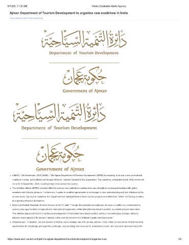 roadshow in India, led by Mahmood Khaleel Alhashmi, Director General of the Department. The roadshow, scheduled to kick off tomorrow will
