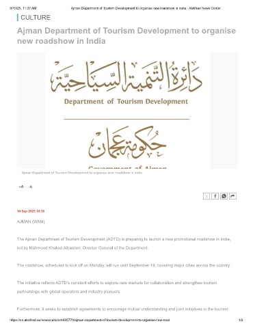 9/15/25, 11:37 AM Ajman Department of Tourism Development to organise new roadshow in India - Aletihad News Center