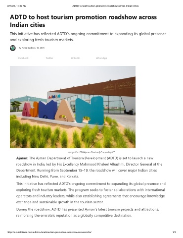 9/15/25, 11:37 AM ADTD to host tourism promotion roadshow across Indian cities