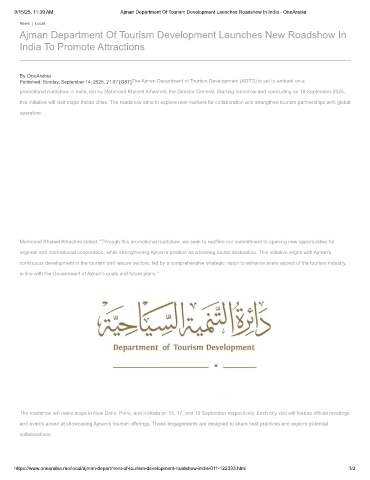 9/15/25, 11:39 AM Ajman Department Of Tourism Development Launches Roadshow In India - OneArabia