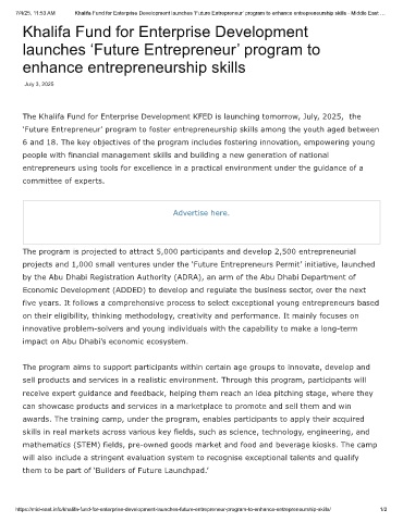 7/4/25, 11:53 AM Khalifa Fund for Enterprise Development launches ‘Future Entrepreneur’ program to enhance entrepreneurship skills - Middle East …