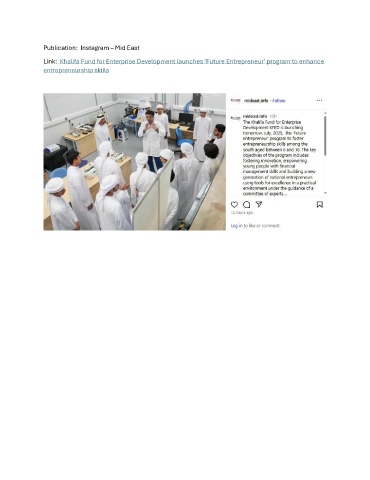 Publication: Instagram – Mid East Link: Khalifa Fund for Enterprise Development launches ‘Future Entrepreneur’ program to enhance entrepreneurship skills
