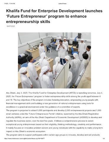 Abu Dhabi, July 3, 2025: The Khalifa Fund for Enterprise Development (KFED) is launching tomorrow, July 4,