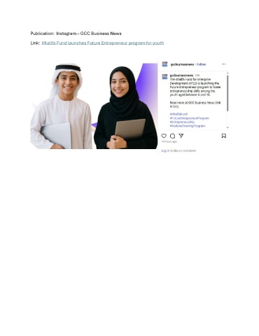 Publication: Instagram – GCC Business News Link: Khalifa Fund launches Future Entrepreneur program for youth