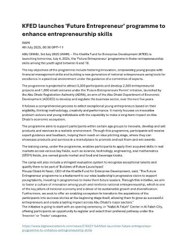 ABU DHABI, 3rd July 2025 (WAM) -- The Khalifa Fund for Enterprise Development (KFED) is