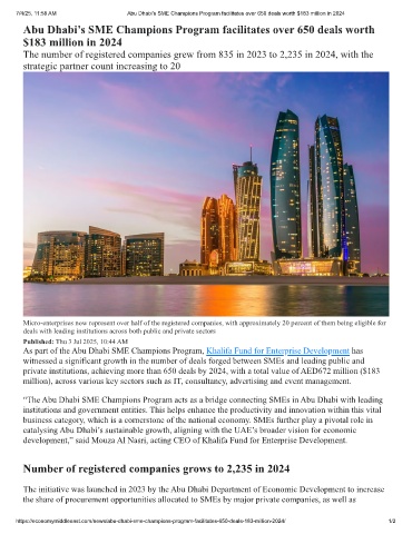 7/4/25, 11:58 AM Abu Dhabi's SME Champions Program facilitates over 650 deals worth $183 million in 2024