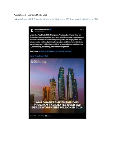 Publication: X – Economy Middle East Link: Abu Dhabi’s SME Champions Program facilitates over 650 deals worth $183 million in 2024