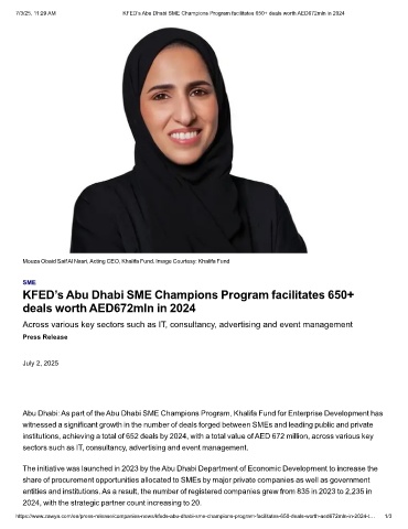 https://www.zawya.com/en/press-release/companies-news/kfeds-abu-dhabi-sme-champions-program-facilitates-650-deals-worth-aed672mln-in-2024-t… 1/3