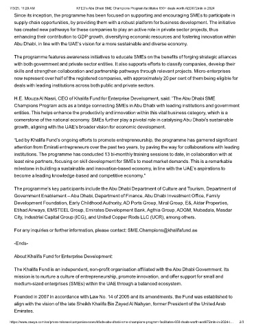 https://www.zawya.com/en/press-release/companies-news/kfeds-abu-dhabi-sme-champions-program-facilitates-650-deals-worth-aed672mln-in-2024-t… 2/3